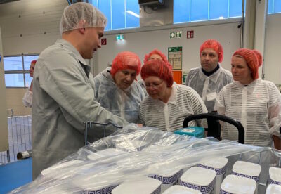 Nach einer Präsentation und kurzer Einweisung, zu der auch eine den Hygiene-Regeln gemäße „Verpackung“ der Gäste mit Kopfhaube und Staubmantel gehörte, gab es beim Rundgang an den Maschinen, die teilweise im Contibetrieb laufen, weitere Informationen.